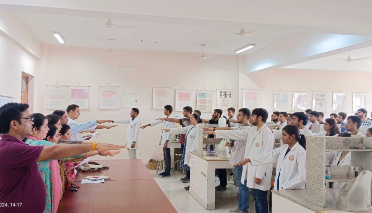 जयपुर (25 जून 2024)। सामाजिक न्याय एवं अधिकारिता विभाग जयपुर द्वारा चलाए जा रहे नशा मुक्त भारत अभियान के तहत मादक पदार्थों के दुरुपयोग एवं अवैध तस्करी के खिलाफ मनाए जा रहे पखवाड़े के अंतर्गत नशीले पदार्थों से होने वाले नुकसान के बारे में आरयूएचएस परिसर में इंस्टीट्यूट आफ पब्लिक हेल्थ एवं एसआरकेपीएस के संयुक्त तत्वाधान में शपथ ग्रहण कार्यक्रम का आयोजन किया गया जिसमें छात्र-छात्राओं को नशा मुक्ति की शपथ दिलाई गई।