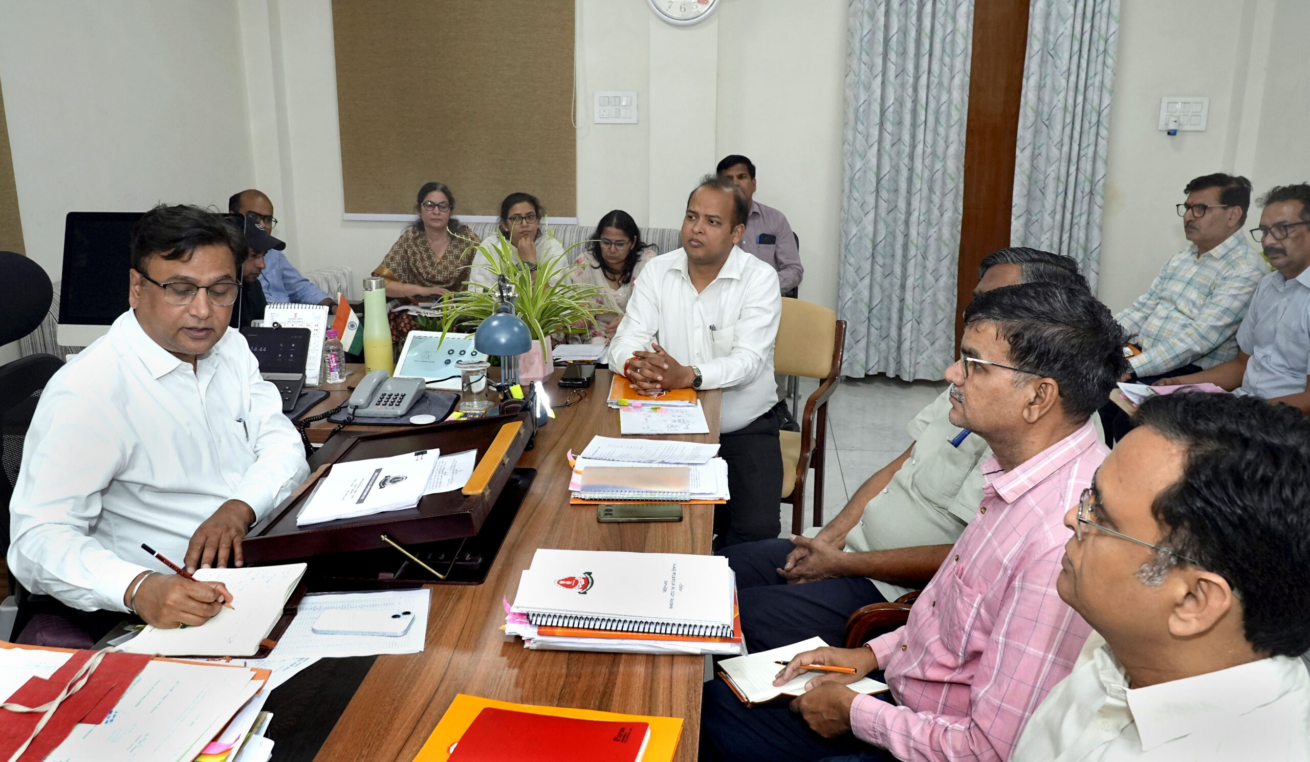 निदेशक आशीष मोदी ने बैठक में स्कैमेटिक बजट, बजट घोषणा वर्ष 2024-25 से 2026-27 एवं मुख्यमंत्री निर्देशों की समीक्षा, भारत सरकार से बजट आवंटन एवं उपयोगिता प्रमाण पत्र की समीक्षा सहित विभाग द्वारा संचालित विभिन्न योजनाओं की जानकारी दी।