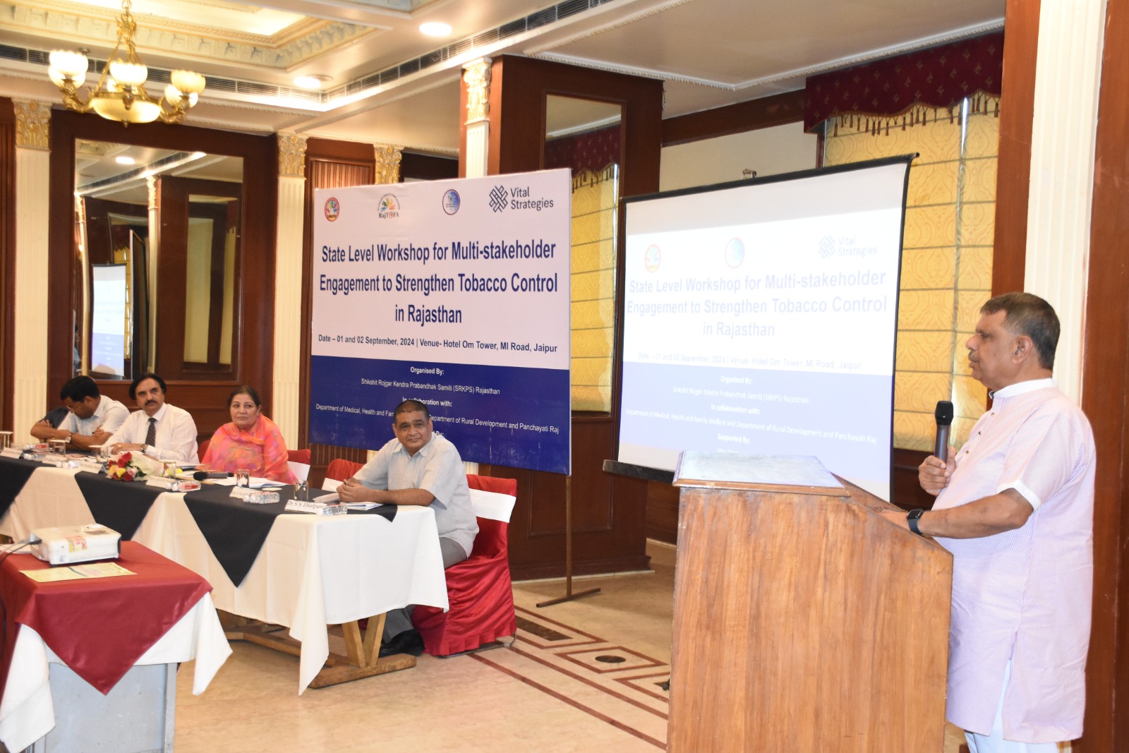 जयपुर,(03 सितंबर 2024)। राज्य स्तरीय बहु हितधारकों की तंबाकू नियंत्रण कार्यक्रम की दो दिवसीय कार्यशाला को संबोधित करते हुए चिकित्सा एवं स्वास्थ्य मंत्री गजेन्द्र सिंह खींवसर ने कहा कि युवा पीढ़ी को तम्बाकू सहित समस्त नशो से बचाने के लिए सामूहिक प्रयास करने की जरूरत है। राष्ट्रीय तम्बाकू नियंत्रण कार्यक्रम प्रकोष्ठ,राज तोफा व एसआरकेपीएस के संयुक्त तत्वाधान में निजी होटल ओम टावर में आयोजित कार्यशाला में मुख्य अतिथि बतौर अपने संबोधन में कहा कि राज्य में तम्बाकू नियंत्रण के लिए बेहतर कार्य किया जा रहा हैं लेकिन आमजन को तम्बाकू जनित उत्पाद से होने वाली बीमारियों के बारे में जानकारी देने हेतु गांव से लेकर बड़े शहरों तक कार्य करने की जरूरत है। स्वास्थ्य मंत्री खींवसर ने कहा कि स्वैच्छिक संगठनों के प्रतिनिधि गांव स्तर तक जन जागरूकता में विशेष भूमिका निभा सकते है। पंचायती राज मंत्री ग्रामीण विकास राज्य मंत्री ओटाराम देवासी ने भी कार्यशाला को संबोधित करते हुए कहा कि तम्बाकू उत्पाद नशे की प्रथम सीढ़ी है। नशे को रोकने के लिए जनप्रतिनिधियों,शिक्षकों व समाज के सक्रिय लोगों को युवा पीढ़ी के साथ संवाद करना चाहिए। देवासी ने कहा कि तम्बाकू मुक्त गांव, पंचायत, तम्बाकू मुक्त पीढ़ी व तम्बाकू का खात्मा चरणबद्ध तरीके से कार्य योजना बना कर करना चाहिए। इस अवसर पर पंचायती राज सचिव रवि जैन ने कार्यशाला को संबोधित करते हुए कहा कि ग्राम पंचायत व गांवों को तम्बाकू मुक्त बनाने के लिए पंचायती राज विभाग कार्य कर रहा है व भारत में नए कीर्तिमान बनाने हेतु तम्बाकू मुक्त ग्राम पंचायत बनाने का कार्य किया जाऐगा। वाइटल स्ट्रैटेजी के डॉ.जेएस राणा ने अपने प्रस्तुतिकरण में तम्बाकू के दुष्प्रभावों पर विस्तार से प्रकाश डाला। एसएमएस के पूर्व अधीक्षक डॉ.वीरेन्द्र सिंह मील, डॉ.राकेश गुप्ता, डॉ.रमेश गांधी, धर्मवीर कटेवा,नरेंद्र सिंह , प्रतिभा सिंह व ज्योति चौधरी सहित अनेक विषय विशेषज्ञों ने तम्बाकू नियंत्रण कार्यक्रम को प्रभावी बनाने हेतु विचार व्यक्त किऐं। कार्यशाला के प्रारम्भ के एनटीसीपी के राज्य नोडल अधिकारी डॉ.एसएन धौलपुरिया ने कार्यशाला के उद्देश्यों पर प्रकाश डालते हुए राज्य में तम्बाकू नियंत्रण को लेकर किए जा रहे कार्यो से अवगत करवाया। कार्यशाला के अंत में एसआरकेपीएस के राजन चौधरी ने सभी का आभार व्यक्त किया।