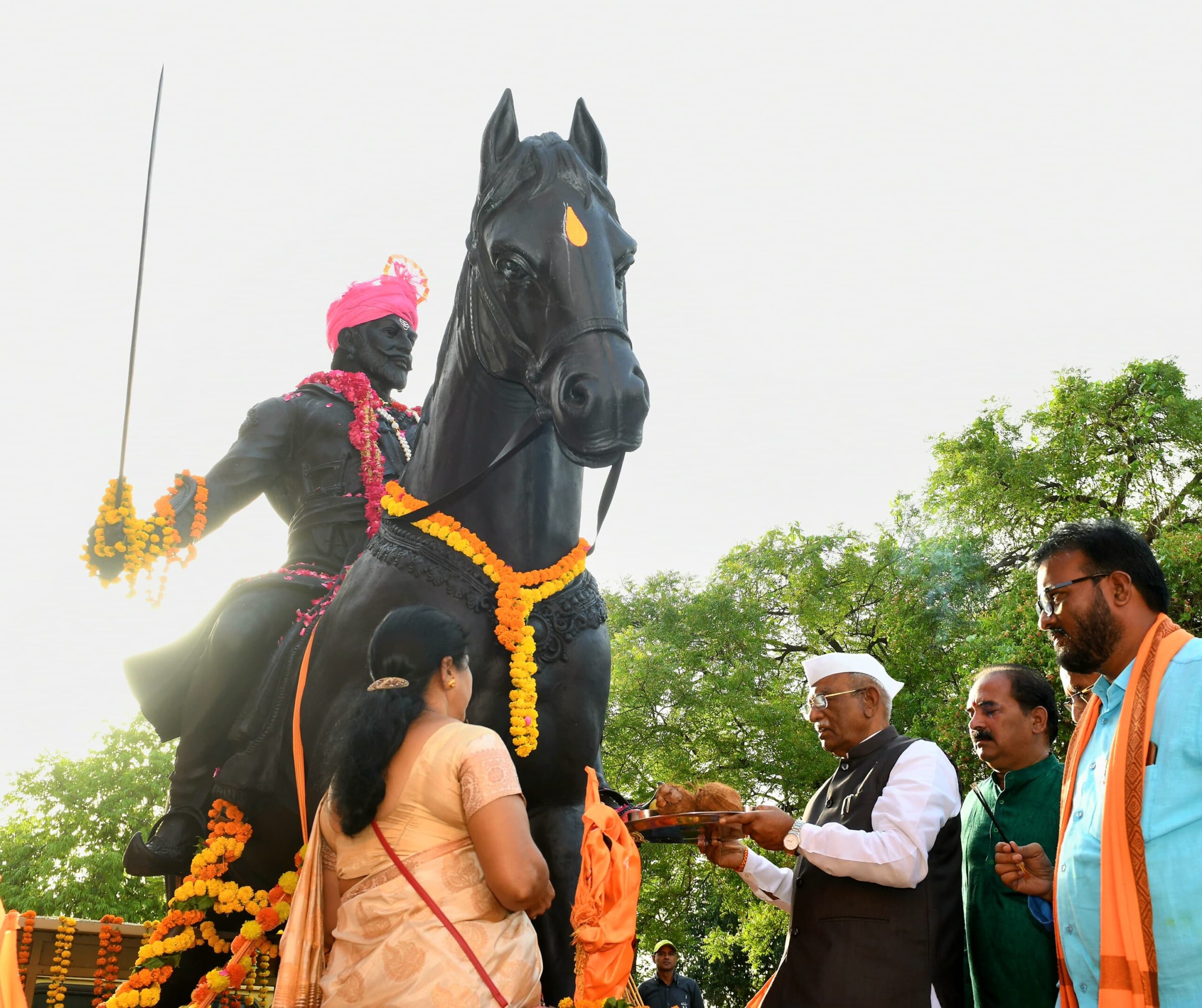 जयपुर, (13 मई 2025)। राजभवन में मंगलवार को छत्रपति संभाजी महाराज जयंती उत्सव समारोह पूर्वक मनाया गया। राज्यपाल हरिभाऊ बागडे ने इस दौरान नासिक से आई उनकी अश्व सवार भव्य प्रतिमा और शोभायात्रा का भाव भरा अभिनंदन किया। दिल्ली में जन्म जयंती मनाने के अंतर्गत मंगलवार को छत्रपति संभाजी महाराज की अश्व सवार प्रतिमा संग शोभा यात्रा राजभवन पहुंची थी।