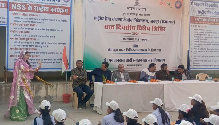 लक्ष्मणगढ़ (23 नवंबर 2024)। स्थानीय भगवानदास तोदी स्नातकोत्तर महाविद्यालय में चल रहे एनएसएस के सात दिवसीय विशेष शिविर के अंतिम दिन शनिवार को समापन समारोह का आयोजन किया गया ।