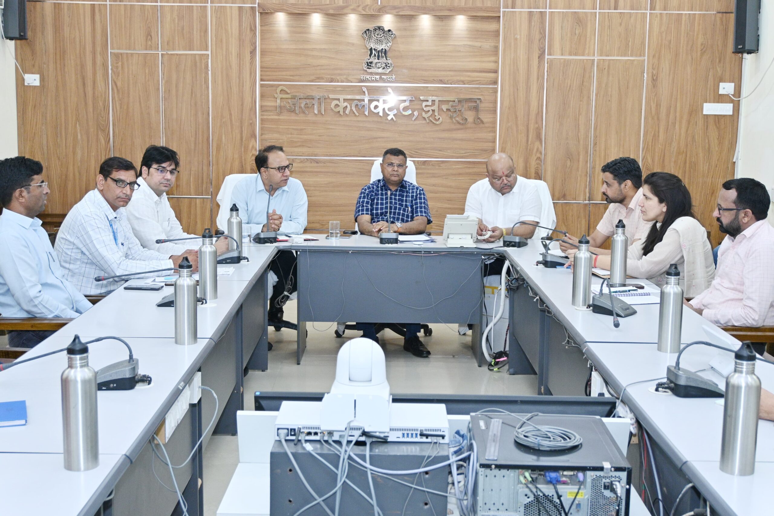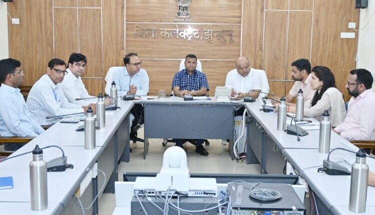 झुंझुनूं,(6 मई 2025)। जिला कलक्टर रामावतार मीणा ने मंगलवार को कलेक्ट्रेट सभागार में वीडियों कांफ्रेंसिंग के जरिए जिले के सभी ब्लॉक स्तरीय अधिकारियों व प्रशासनिक अधिकारियों की बैठक ली। बैठक में जिला कलक्टर ने जिला प्रशासन द्वारा चलाए जा रहे महत्वपूर्ण अभियान ‘रास्त खोलो अभियान’ की प्रगति जांची। जिला कलक्टर मीणा ने जिले में अनुपयोगी भवनों की भी जानकारी लेते हुए इनके जीर्णोद्दार व सदुपयोग की बात कही। कलक्टर मीणा ने स्थानीय निकाय तथा पंचायत परिसीमन के भी विभिन्न मुद्दों पर चर्चा की। बैठक में एसपी शरद चौधरी, एडीएम अजय कुमार आर्य, एसडीएम हवाई सिंह यादव, तहसीलदार महेंद्र मूंड समेत विभिन्न अधिकारी मौजूद रहे।