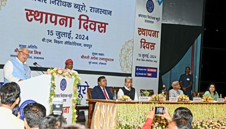 भ्रष्टाचार निरोधक ब्यूरो का स्थापना दिवस आयोजित भ्रष्टाचार मुक्त राजस्थान के लिए सब मिलकर प्रयास करे – राज्यपाल