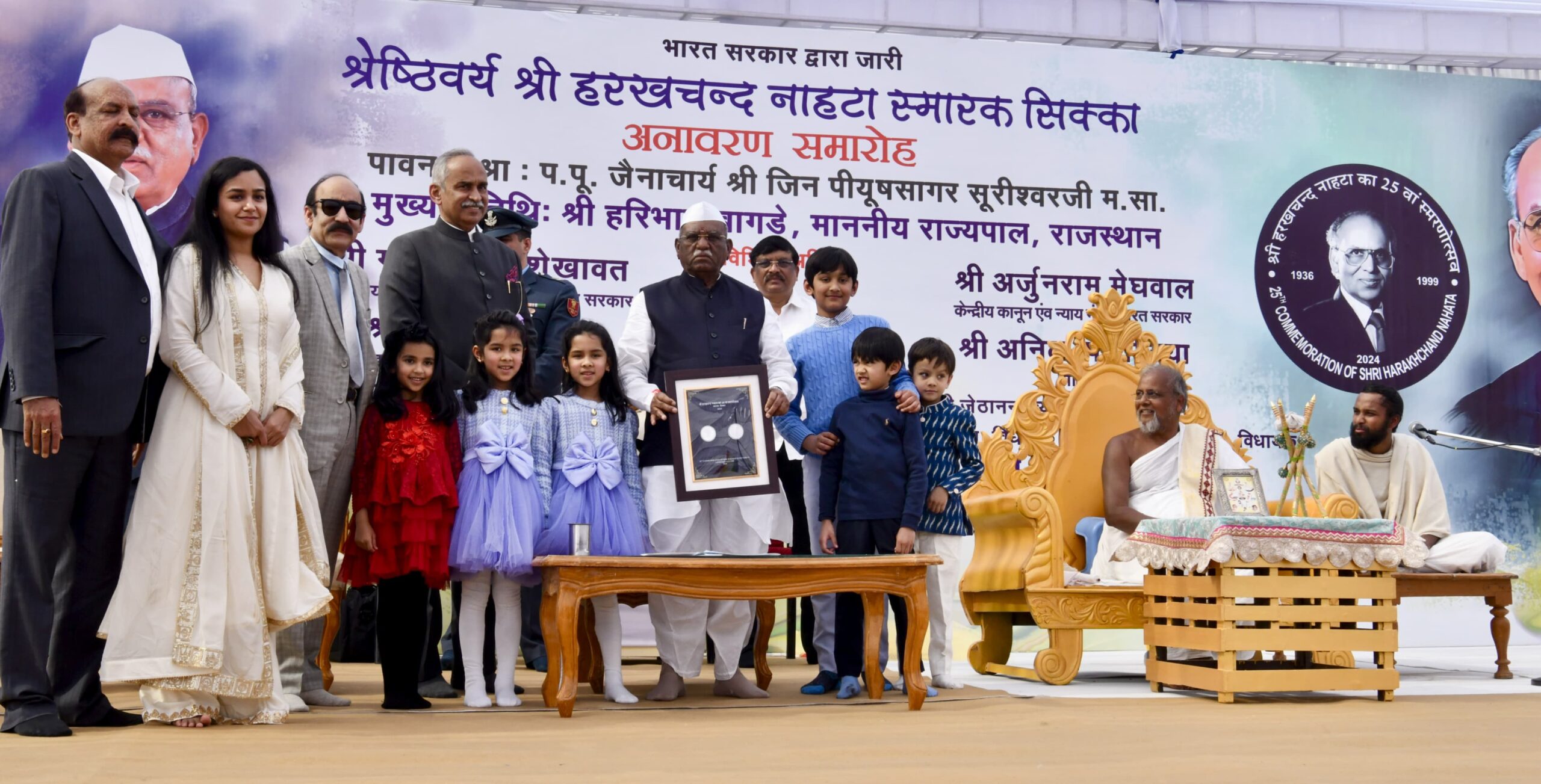 इस दौरान राज्यपाल हरिभाऊ बागडे ने स्मारक सिक्के का अनावरण किया तथा यह सिक्का नाहटा परिवार के छोटे बच्चों को आशीर्वाद के साथ सौंपा।