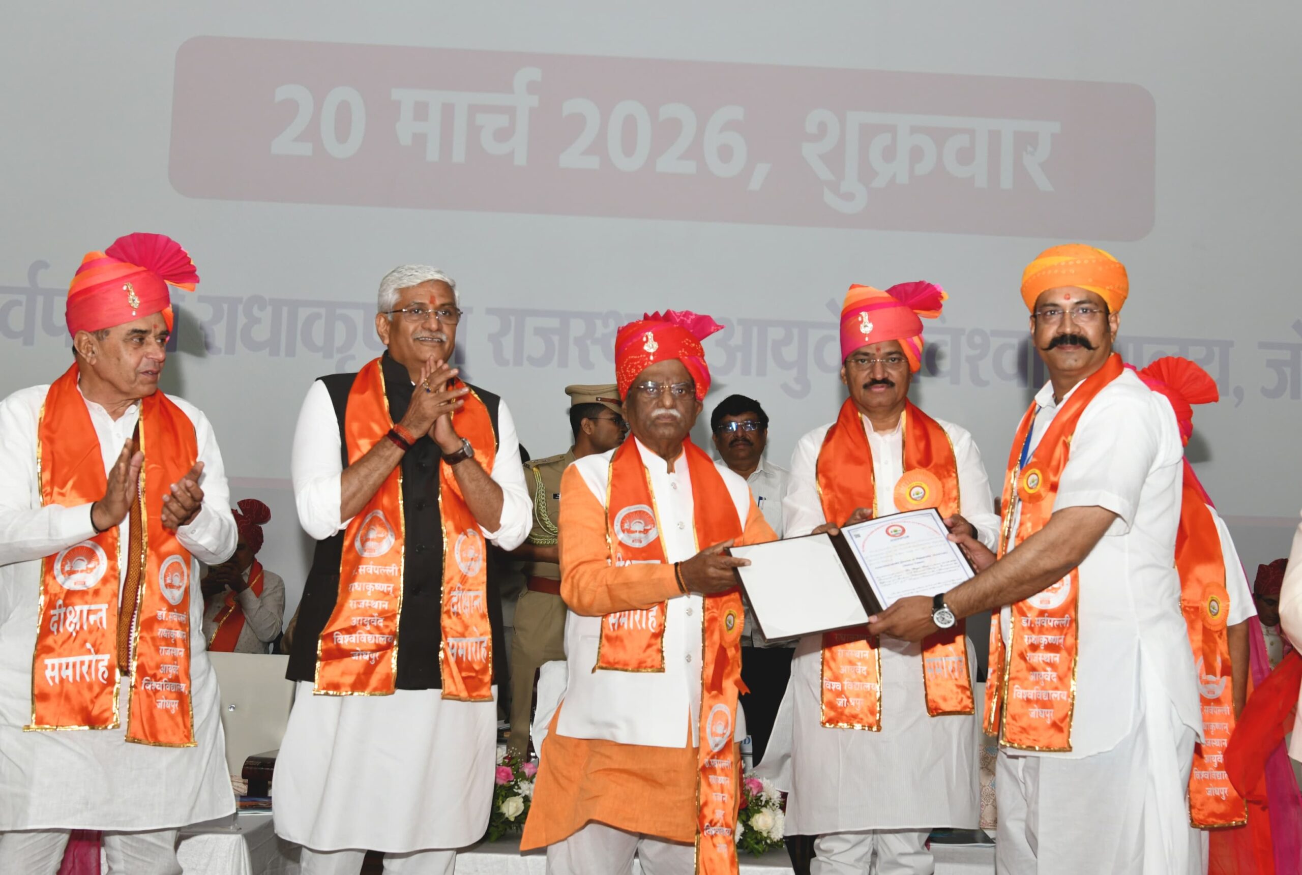जयपुर, (20 मार्च 2026)। राज्यपाल एवं कुलाधिपति हरिभाऊ बागडे ने कहा कि दीक्षांत केवल उपाधि प्रदान करने का अवसर नहीं, बल्कि विद्यार्थियों के नव जीवन की शुरुआत का महत्वपूर्ण क्षण है। उन्होंने कहा कि यह वह समय होता है जब विद्यार्थी अर्जित ज्ञान को समाज और राष्ट्र के उत्थान में उपयोग करने के लिए तैयार होते हैं।