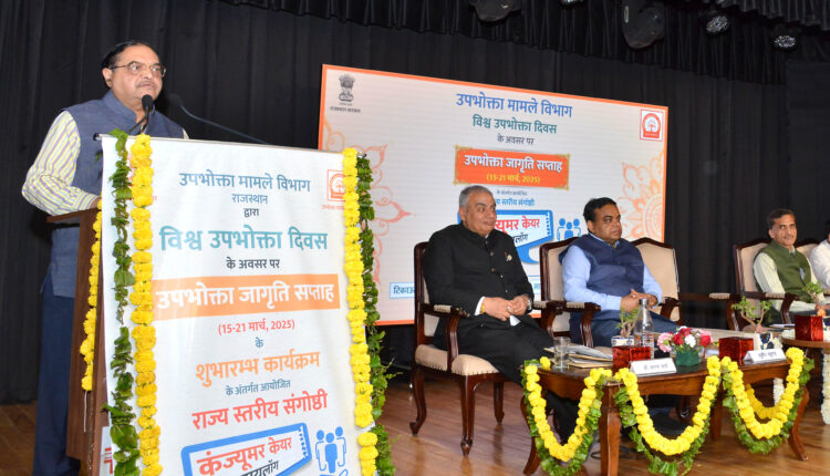जयपुर,(15 मार्च 2025)। विश्व उपभोक्ता दिवस के अवसर पर शनिवार को उपभोक्ता जागृति सप्ताह का शुभारंभ किया गया। इस अवसर पर उपभोक्ता मामले विभाग द्वारा राजस्थान इंटरनेशनल सेंटर, जयपुर में कंज्यूमर केयर डायलॉग राज्य स्तरीय संगोष्ठी आयोजित की गई। संगोष्ठी में “टिकाऊ जीवनशैली की ओर एक उचित बदलाव” और “साइबर क्राइम एवं बचाव के उपाय” विषयों पर विशेषज्ञों ने विचार साझा किए।