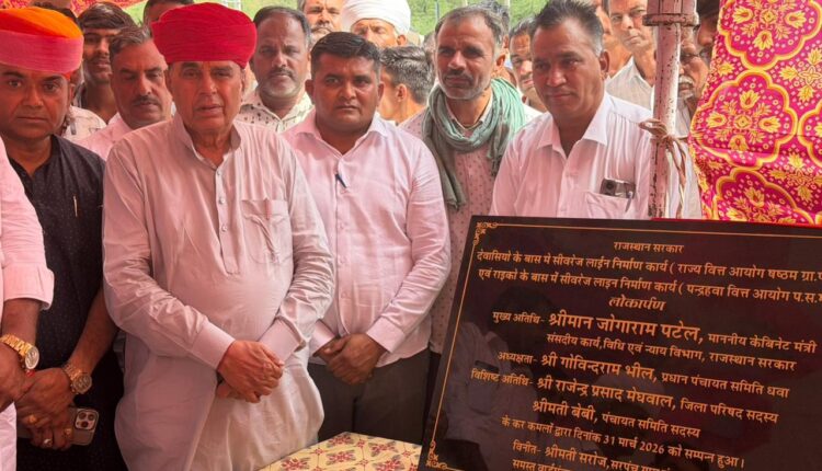 जयपुर, (31 मार्च 2026)। संसदीय कार्य, विधि एवं विधिक कार्य मंत्री जोगाराम पटेल ने मंगलवार को जोधपुर धवा में राजकीय ब्लॉक आयुष चिकित्सालय सहित 1 करोड़ रुपये के विकास कार्यों का विधिवत शिलान्यास एवं लोकार्पण किया। पटेल ने कहा कि मुख्यमंत्री भजनलाल शर्मा के संवेदनशील नेतृत्व में हमारा लक्ष्य वर्ष 2047 तक ‘समृद्ध राजस्थान-स्वस्थ राजस्थान’ का निर्माण करना है। वित्तीय वर्ष 2026-27 में चिकित्सा एवं स्वास्थ्य के लिए 32 हजार 526 करोड रुपये का प्रावधान किया गया है।