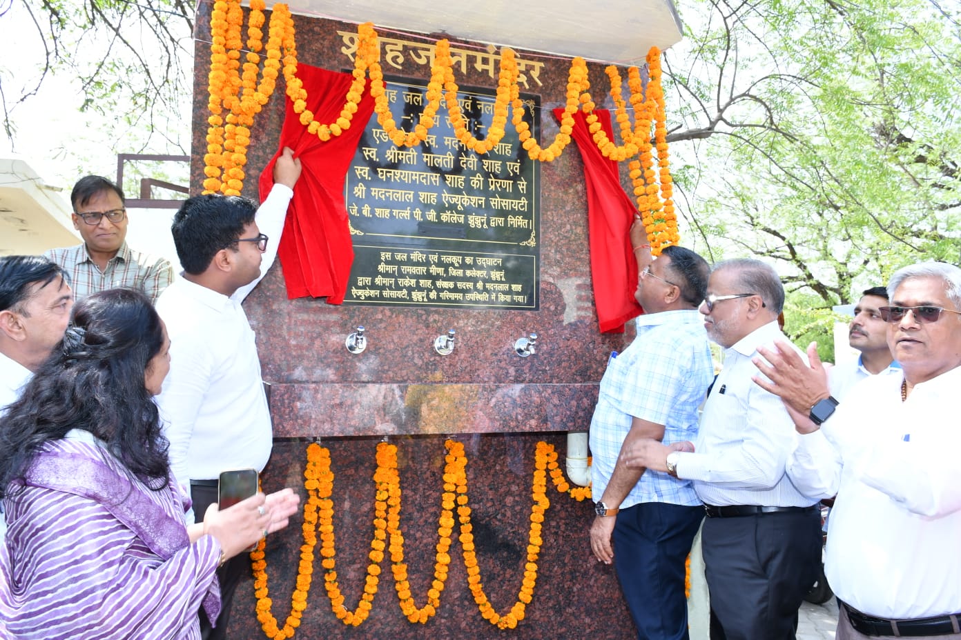 झुंझुनूं, (2 मई 2025)। जिला मुख्यालय के सूचना केंद्र परिसर में शुक्रवार को मदनलाल शाह एज्युकेशन सोसायटी की ओर से स्थापित शाह जल मंदिर और जलकूप का लोकार्पण जिला कलेक्टर रामावतार मीणा द्वारा किया गया। इस मौके पर सोसायटी के कोलकाता प्रवासी ट्रस्टी राकेश शाह, सोसायटी सचिव राजकुमार मोरवाल, पीआरओ हिमांशु सिंह तथा जेबी शाह गर्ल्स कॉलेज की प्रिंसिपल डॉ. योगिता शर्मा आदि मौजूद थे। अतिथियों ने नारियल फोड़कर और नामकरण पट्टिका का अनावरण कर जल मंदिर का लोकार्पण किया। उद्योगपति राकेश शाह ने बताया कि उनका जन्म झुंझुनूं में हुआ है। उनके दादा एडवोकेट मदनलाल शाह ने झुंझुनूं के इसी कोर्ट में वकालत की। आज दादा स्व. मदनलाल शाह, दादी स्व. मालतीदेवी शाह और पिता स्व. घनश्यामदास शाह की प्रेरणा से उन्हें एक और मौका झुंझुनूं से जुड़ने का मौका मिला है। जिसके लिए वे सभी को शुक्रिया अदा करते हैं। उन्होंने कहा कि झुंझुनूं में पानी और नारी शिक्षा की महत्ती आवश्यकता है। हमारा परिवार और संस्था भी इसी दिशा में लगातार काम कर रही है। हम 42 सालों से गर्ल्स कॉलेज का संचालन कर नारी शिक्षा के संकल्प को पूरा कर रहे है। तो वहीं जलकूप और जल मंदिर का निर्माण करवाकर पीने के पानी सभी को मुहैया करवाने की दिशा में भी कदम बढाया है। इस जल मंदिर के निर्माण से ना केवल सूचना केंद्र, बल्कि कलेक्ट्रेट और न्यायालयों में आने वाले लोगों को इस भीषण गर्मी में पीने के लिए ठंडा पानी हर वक्त मिलेगा। इस मौके पर जिला कलेक्टर रामावतार मीणा ने भी प्रवासी राकेश शाह द्वारा करवाए गए कार्य को लेकर आभार जताया और कहा कि झुंझुनूं में प्रवासियों के सहयोग से काफी काम हो रहे है।