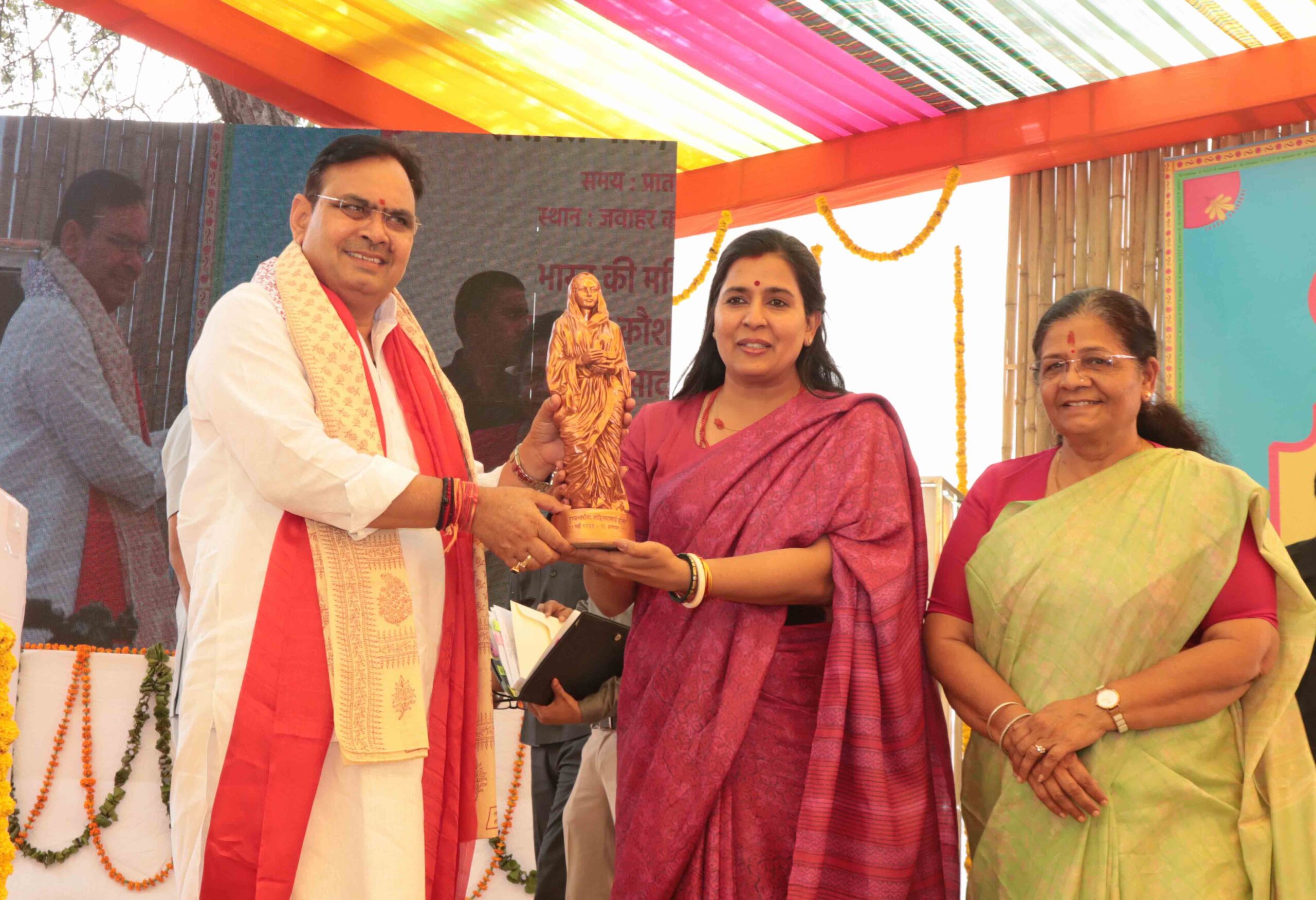 इससे पहले मुख्यमंत्री ने दीप प्रज्ज्वलित कर तीन दिवसीय ‘नारी शक्ति वंदन भारत के स्व का अभिनंदन’ महोत्सव का शुभारंभ किया। उन्होंने शक्ति वंदन पुस्तक में उद्यमी महिलाओं के लिए संदेश लिखा। शर्मा ने जयपुर नगर निगम ग्रेटर द्वारा आयोजित देवी अहिल्याबाई होल्कर प्रदर्शनी का भी अवलोकन किया और प्रदर्शनी के रिड्यूस, रीयूज और रीसाइकिल आधारित उत्पादों की सराहना की। इस अवसर पर नगर निगम जयपुर ग्रेटर की महापौर डॉ. सौम्या गुर्जर ने मुख्यमंत्री को अहिल्याबाई होल्कर की प्रतिमा भेंट की। कार्यक्रम में जयपुर सांसद मंजू शर्मा सहित जनप्रतिनिधिगण, स्वयं सहायता समूहों से जुड़ी महिला उद्यमी एवं बड़ी संख्या में अन्य महिलाएं उपस्थित रहीं।
