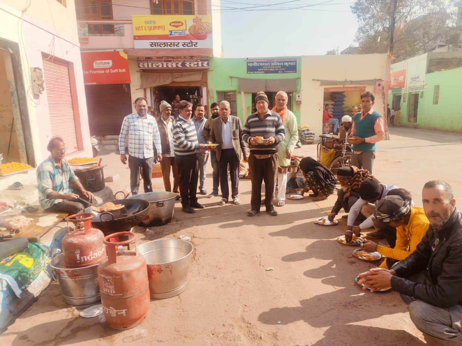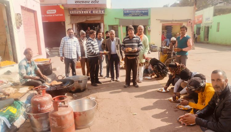झुंझुनूं, (14 जनवरी 2024)। छावणी बाजार में श्री गल्ला व्यापार संघ द्वारा रविवार को मकर संक्रांति पर्व के उपलक्ष में प्रात: 10 बजे से गरीबों को भोजन कराया गया। सभी आगंतुक जरूरतमंद गरीब लोगों को पंगत में बैठाकर गरम पूड़ी, सब्जी एवं मिठाई खिलाई गयी।