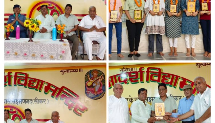 लक्ष्मणगढ (3 जून 2024)। बालिका आदर्श विद्या मंदिर में कक्षा दसवीं बोर्ड परीक्षा में सर्वश्रेष्ठ अंक प्राप्त करने वाली छात्राओं को समिति के पदाधिकारियो, मुख्य अतिथि, प्रधानाचार्य एवं आचार्य-आचार्याओ द्वारा सम्मानित किया गया । कार्यक्रम का शुभारंभ मां सरस्वती के समक्ष अतिथियों द्वारा दीप प्रज्जवलन करके किया गया । प्रारम्भ में विद्यालय के प्रधानाचार्य विद्याधर शर्मा ने अतिथियों का स्वागत किया।