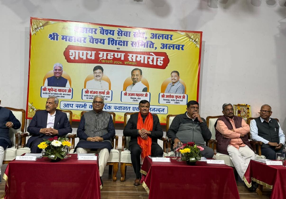 जयपुर, (7 फरवरी2026)। केंद्रीय वन एवं पर्यावरण मंत्री भूपेन्द्र यादव तथा वन राज्य मंत्री (स्वतंत्र प्रभार) संजय शर्मा ने आज महावर ऑडिटोरियम में आयोजित महावर वैश्य शिक्षक समिति एवं सेवा संघ कार्यकारिणी शपथ ग्रहण समारोह में शिरकत कर नवीन कार्यकारिणी को शपथ दिलाई।