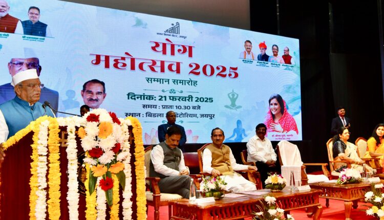 राज्यपाल शुक्रवार को नगर निगम ग्रेटर, जयपुर और क्रीड़ा भारती द्वारा आयोजित योग साधक सम्मान समारोह में संबोधित कर रहे थे। उन्होंने इस अवसर पर 1611 मिनट का अनवरत योग कर विश्व कीर्तिमान स्थापित करने में महती भूमिका निभाने वाले योगाचार्य, योग प्रशिक्षकों और योग प्रेरकों का अभिनंदन करते हुए उन्हें सम्मानित भी किया।